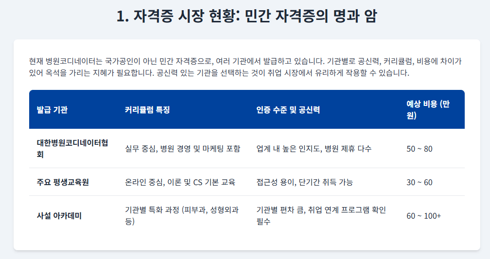 - 의미: 병원코디네이터 자격증은 직무 이해도를 보여주는 **'성실성의 증표'**로 해석하는 것이 더 합리적입니다.