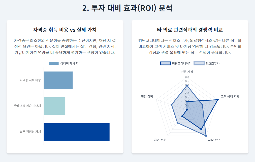 - 신호(Signal): 병원코디네이터 자격증은 취업의 필수 조건이라기보다, 병원 서비스 분야에 대한 **구직자의 관심과 열정을 보여주는 효과적인 '신호'**입니다. 이는 면접에서 경쟁력을 확보하는 출발점이 될 수 있습니다.