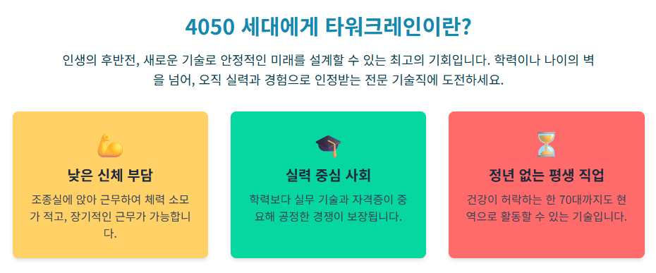V. 중장년층에게 타워크레인 기술이 최적인 이유: 경력 전환의 성공 방정식